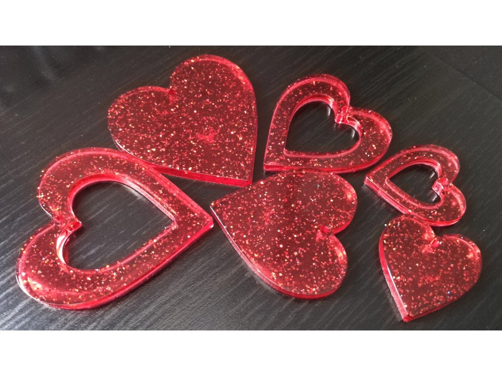 Přívěsky z pryskyřice mix velikostí, největší srdce 4,5cm, 6ks/15,-